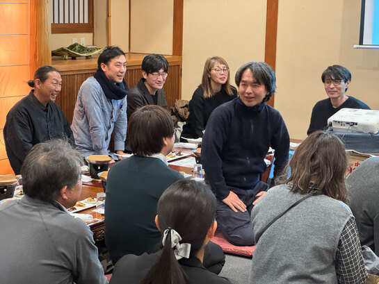 新年会に先立った企画として、保存の会による船の体育館のセミナー/意見交換会が行われ、解体に向けて進んでいる現状、アート県でもある香川県の系譜、現在行なっている活動など様々なことを勉強させていただきました。