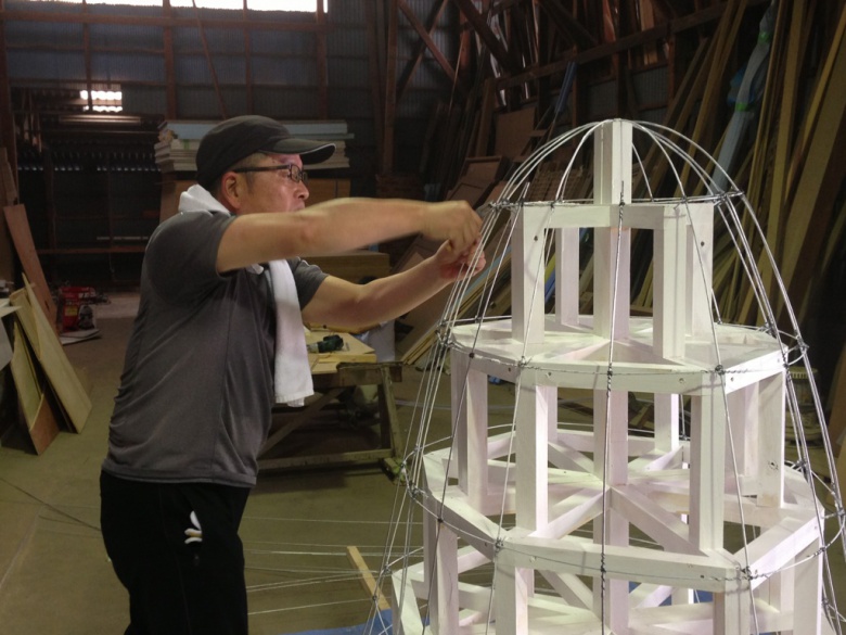 これから、照明器具の仕込み、和紙貼り・・・